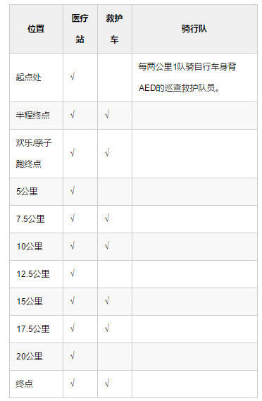 1、从5公里开始,每2.5公里设置固定医疗站。