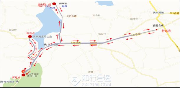 1.全程马拉松路线:翡翠园广场----大坝----陡山村路口左转-----歆园农庄折返------铁山寺游客中心---金陵山庄----铁山寺游客中心------陡山村路口左转 ----大坝----翡翠园广场