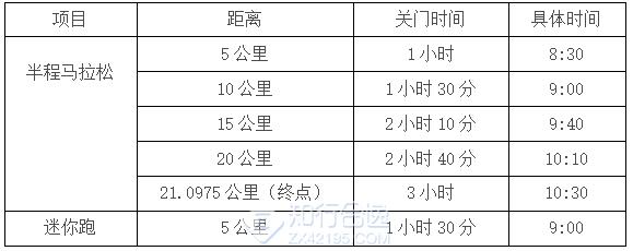 为了保证参赛选手比赛安全、顺利,比赛期间比赛路线各段设关门时间,限时对社会交通进行封闭。关门时间后,相应公里点的计时毯停止工作,相应路段恢复社会交通。在规定的关门时间内,未跑完对应距离的参赛选手须立即停止比赛,退出赛道,以免发生危险。退出比赛的选手可乘坐组委会提供的收容车抵达相应项目的终点处。