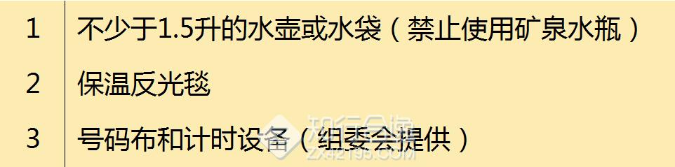 参赛包:参赛T恤、束口袋、号码簿、计时芯片