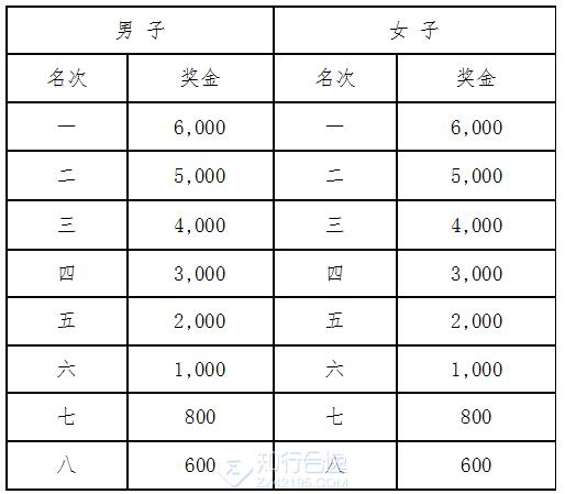 2、半程马拉松第一至第八名选手分别获得如下表所列的奖金。