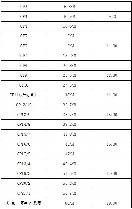 (4)参赛选手必须全程沿着有标记的赛道路线进行比赛,并在每个计时站打卡登记,抄近路者,将被取消参赛资格。