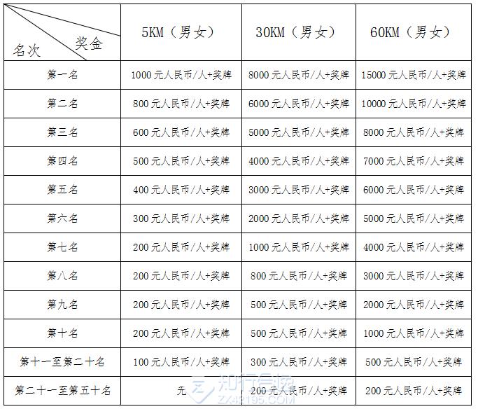 (1)60KM、30KM分别奖励男、女前50名。