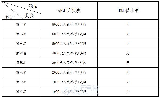 (2)5KM设立个人奖,及团体奖,个人奖奖励前20名,团队奖奖励前8名;