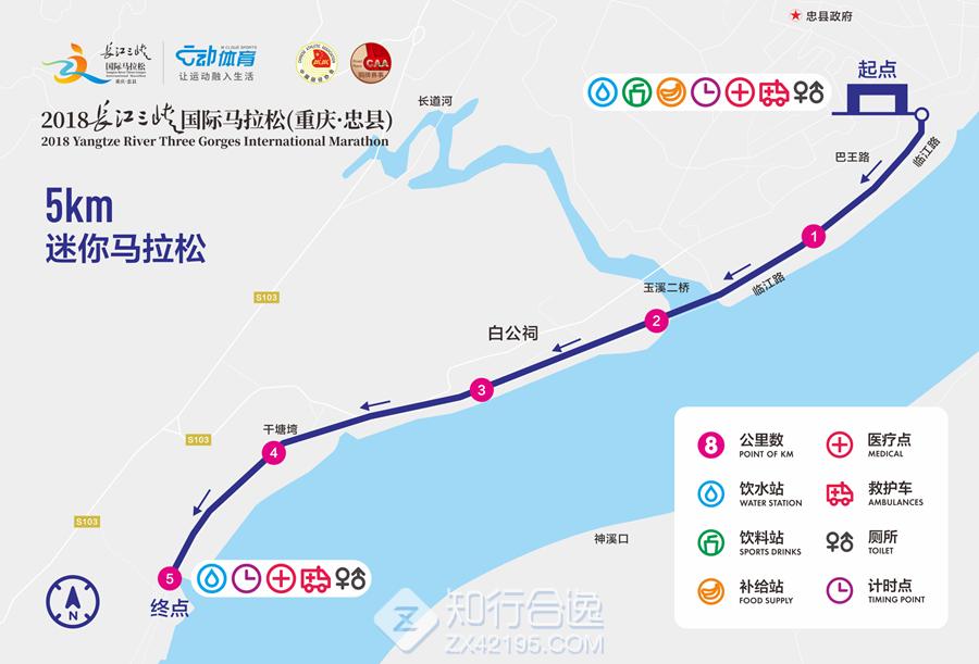 临江路与广场西路交叉口(起点)—玉溪二桥—漕溪河大桥—万树桥大桥—新屋山—车辆掉头口(折返)—新屋山—万树桥大桥—双河口—百窑村—邓家村(折返)—万树桥大桥—玉溪二桥—临江路—滨江路—忠县公安局—大桥路—忠县长江大桥—城黔路—钟溪大桥—城黔路—龙潭(折返)—城黔路—忠县长江大桥—大桥路—忠县公安局—滨江路—临江路与广场西路交叉口(终点)。