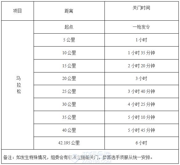 关门时间以发令枪声时间计时,具体见下表: