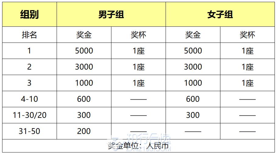 比赛奖励取35KM组男子前50、女子前20名,为其颁发奖金。