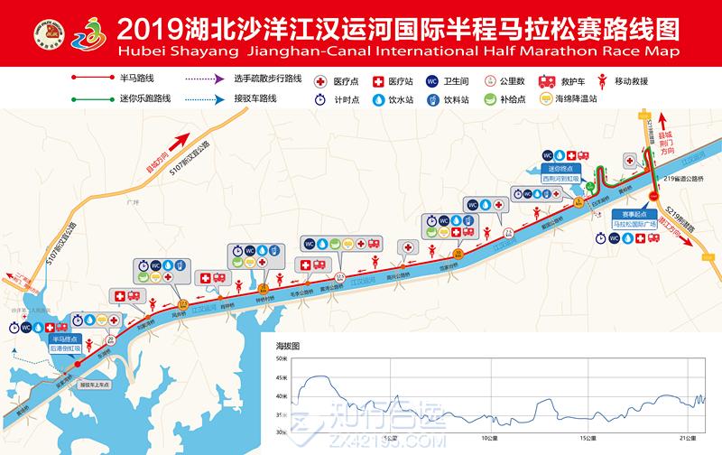 沙洋国际马拉松广场(起点)—219省道公路桥—运河北岸—后港倒虹吸(终点)