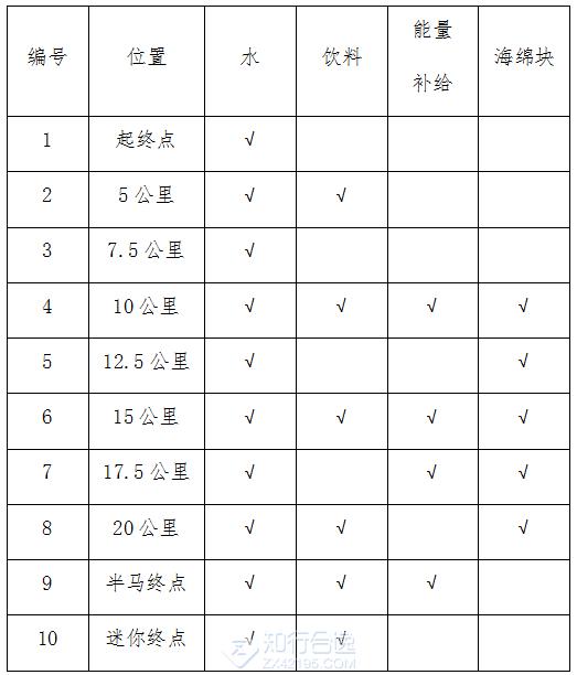 半程马拉松:起点、5公里、10公里 、15公里、终点;
