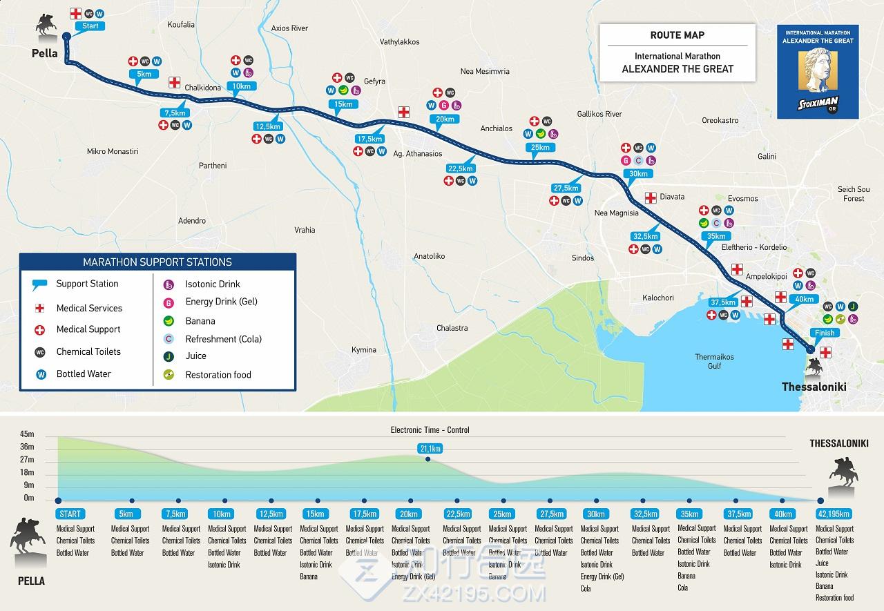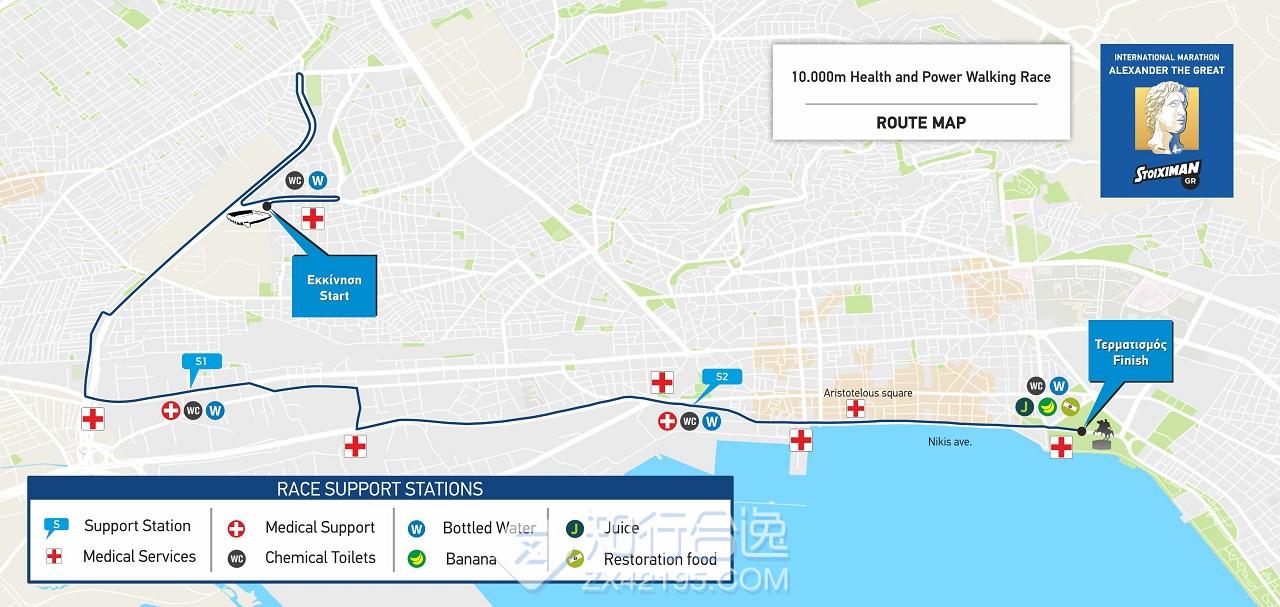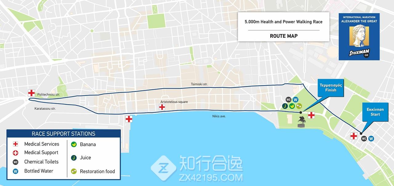 5公里起点则在塞萨洛尼基市政厅(Thessaloniki City Hall)
