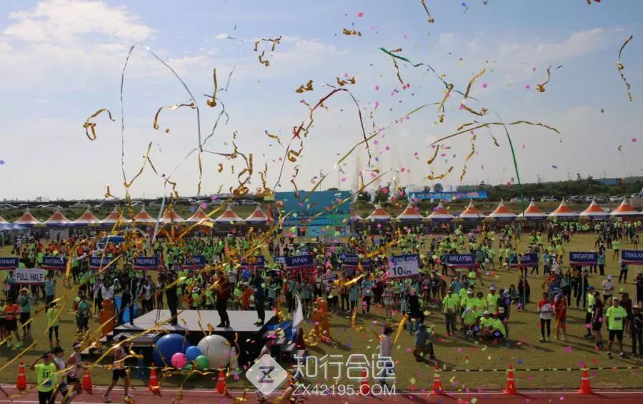 比赛的起点位于旧左生活体育公园运动场,起跑前,会将所有参赛者以各国国籍和代表团列队的方式来完成热身进入赛道,就如同奥运会入场式般的既视感,整个场面仪式感爆棚,让你在国旗的引导下入场的荣誉感已足够留下深深的记忆。