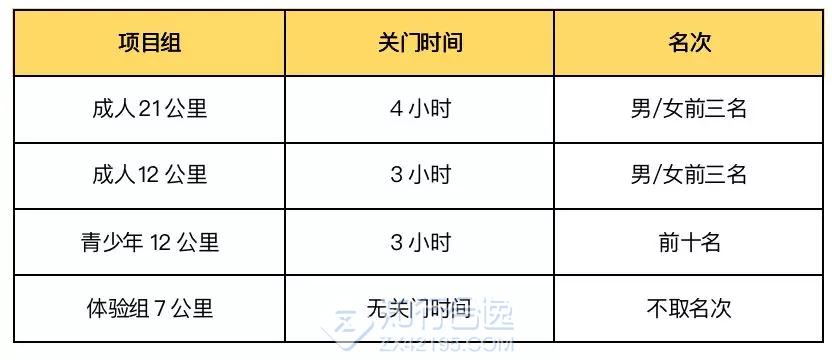 成人组(男、女21km,男、女12km):18岁及以上(2001年当年及以前出生)