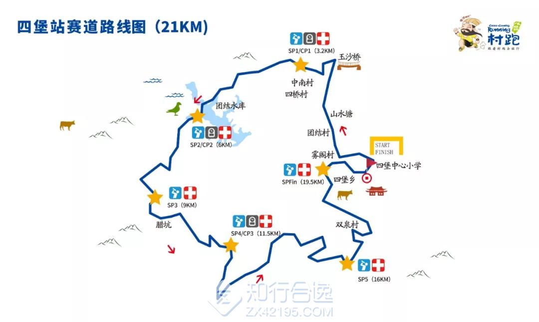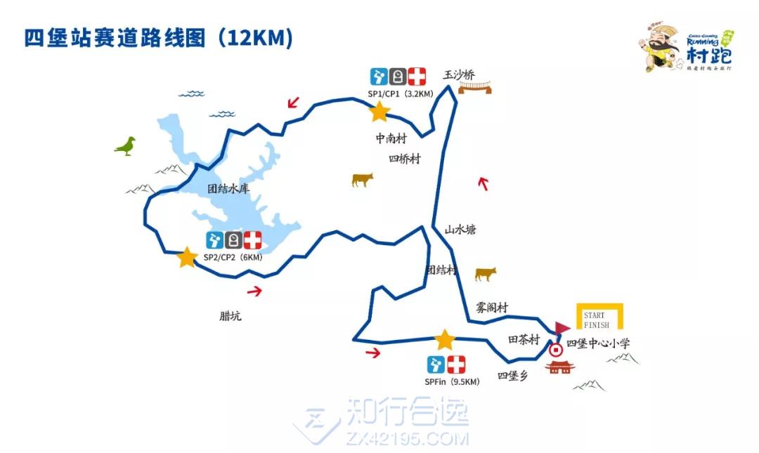 赛道路线:(起点)四堡中心小学—雾阁村— 团结村村口— 玉沙桥 —花溪长廊—团结村李花园—团结水库—腊坑村—团结村桃花园—双泉村古民居—四堡雕版印刷博物馆—古书坊—(终点)四堡中心小学