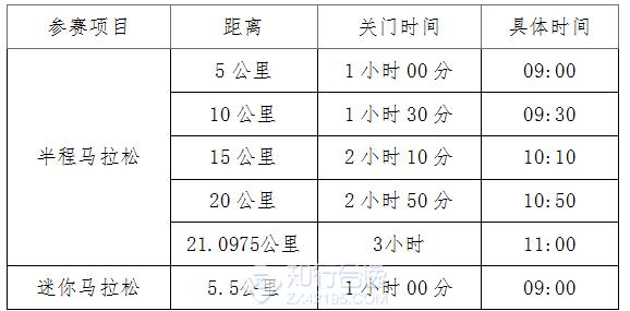 关门时间按自然时间计算,具体见下表(以发令枪声时间为准):