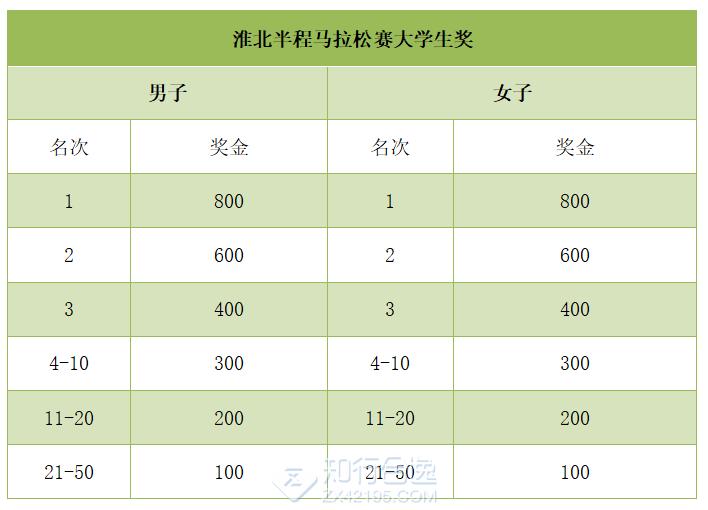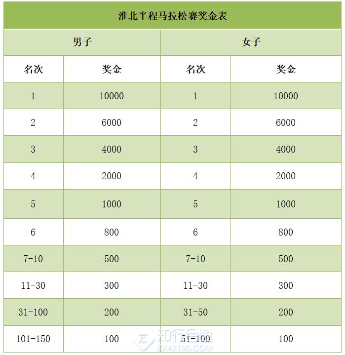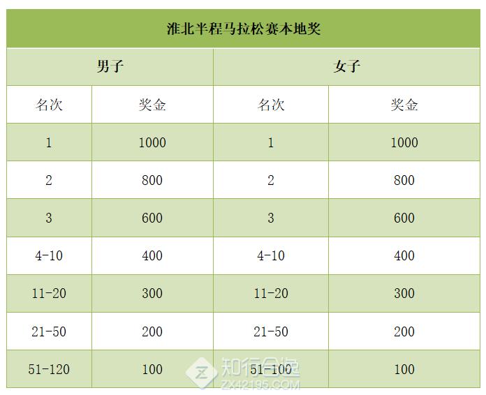 (三)淮北本地大众奖(仅限于半程马拉松赛)(人民币,单位:元)
