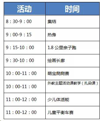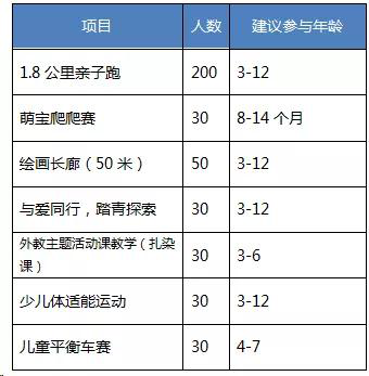 说明:亲子跑可全部参与,宝宝爬行赛限制8-14个月宝宝,其余项目任选两项报名参与,全部项目总计报名300组家庭。