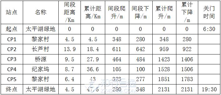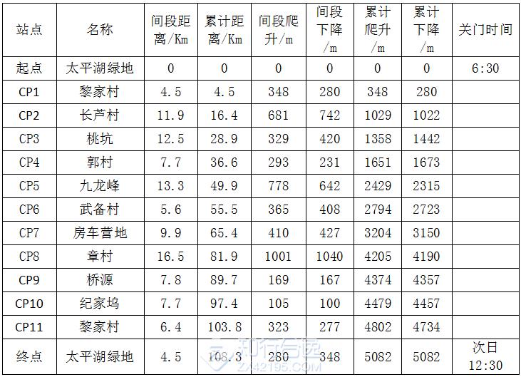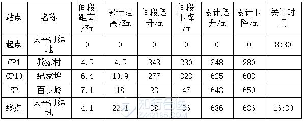 6.比赛将在部分补给站设置关门时间。此关门时间不因天气等因素而变更。每一位参赛选手都必须在关门时间以前到达,方能继续参与比赛。