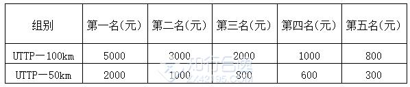 UTTP—100km、UTTP—50km项目男、女前五名选手将现场颁奖,并获得以下现金(人民币/税前)奖励: