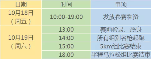 3.比赛设关门时间,半程马拉松参赛选手应在4小时内完成比赛,5公里参赛选手应在1小时内完成比赛。比赛设有分段关门时间,参赛者在各补给站关门时间之后到达该点的,须主动退出比赛。