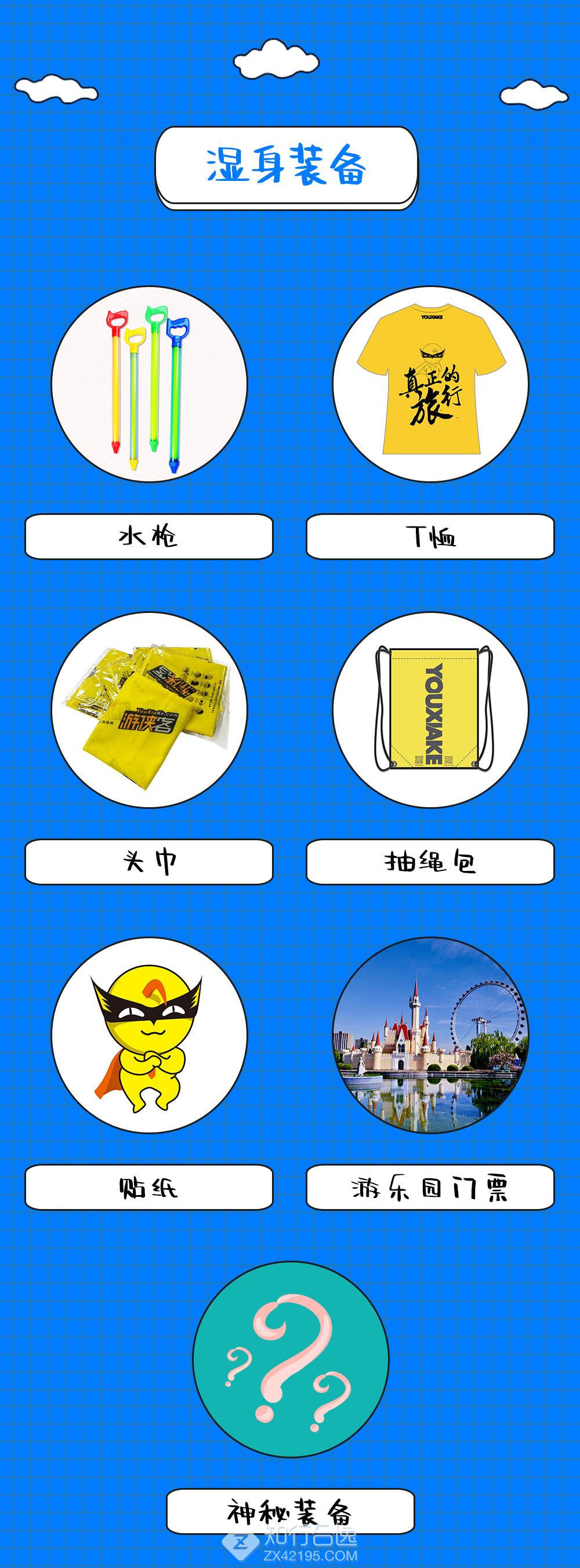 7.活动装备:T恤、抽绳包、徽章、魔术头巾、手机防水袋等