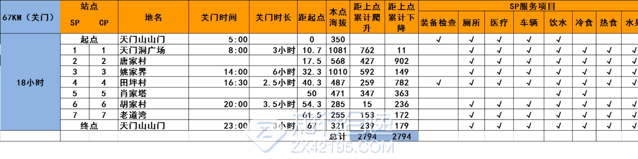 2、67公里组:关门时间18小时,起终点天门山山门,赛事规模1000人;