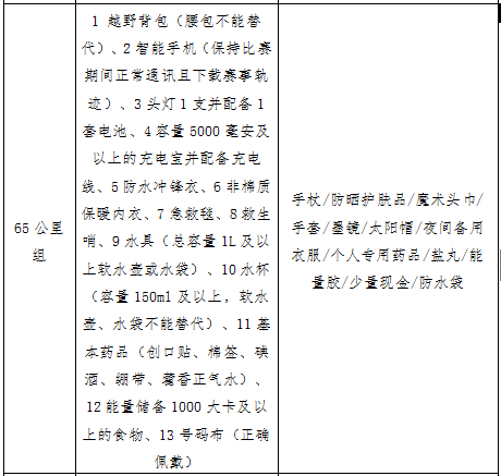 5)主办方不会对包内物品进行清理和登记,不接受参赛者对包内物品状况提出质疑。建议不要在存包内放置贵重物品。建议在存包内存放用于终点的盥洗物品和衣物。