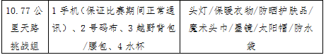 2、组委会在选手报到以及比赛过程中将严格查验选手强制装备携带是否符合标准,强制装备必须随身携带,放在换装包内视为无强制装备,强制装备不符合要求者一经发现立马进行相关处罚直至强制退赛。