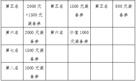 备注:所有获奖名次奖励需通过公示后统一发放,装备券的使用规则赛后工作人员统一告知。