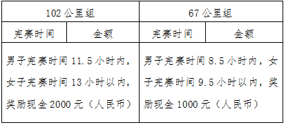 1、完赛选手:102公里组和67公里组发放完赛服 、完赛奖牌,10.77公里组发放完赛奖牌(无完赛服)