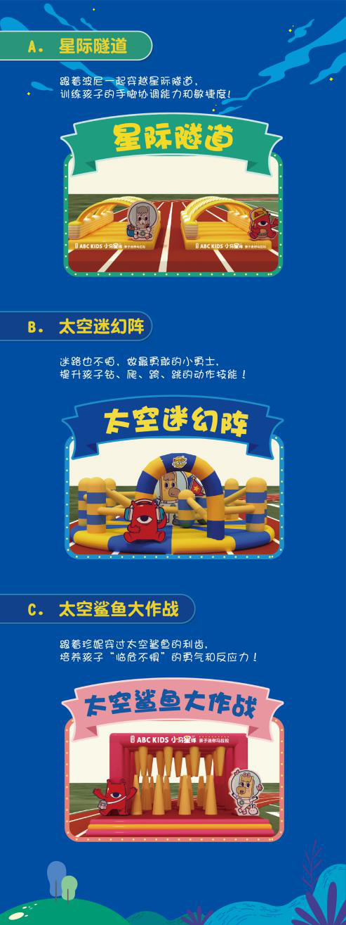 通过多个体育项目开启宝贝运动天赋,让宝宝瞬间成为赛场上的焦点!让宝贝们成为万众瞩目的“运动新星”,每个体育项目的小组冠军还可获得奖励!