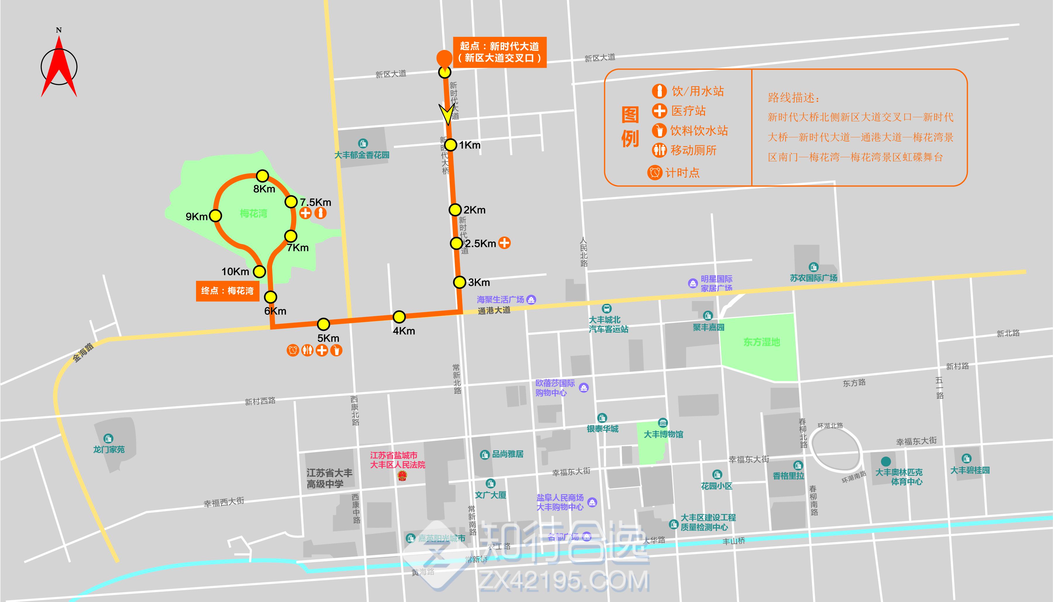 (2)健康跑路线:新时代大桥北侧新区大道交叉口—新时代大桥—新时代大道—通港大道—梅花湾景区南门—梅花湾—梅花湾景区虹碟舞台