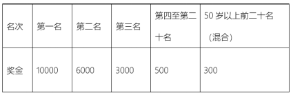 (2)其他:男、女前三名参赛者各颁发奖杯一座、奖牌一枚、在规定时间内跑完半程者发给纪念奖牌;成绩证书在网上打印。