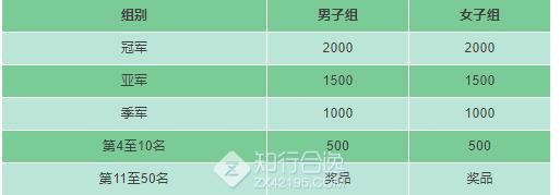 男、女前10名皆有奖金发放,11-50名可获得精美奖品;所有完赛者均有纪念奖牌。