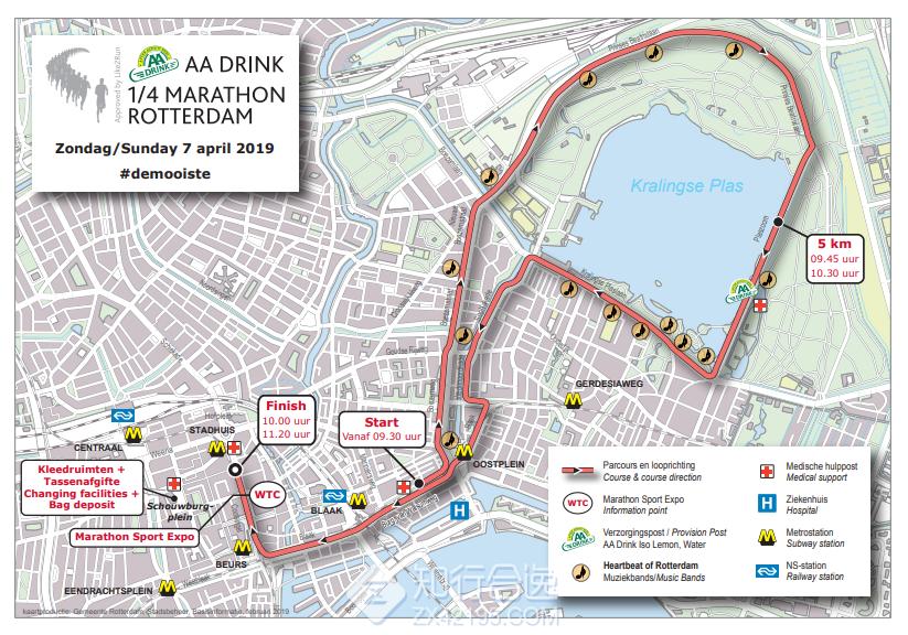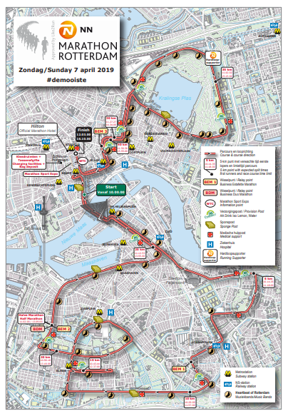 鹿特丹马拉松赛道因屡出好成绩而享誉全球!选手将从埃拉斯穆斯布鲁格山脚下开始,并将继续朝德科普·范祖伊德方向前进。沿途会经过几个鹿特丹亮点。除了2公里处的大桥赛段、5公里、30公里处的树林赛段,其余赛段一马平川,赛道非常适合PB!