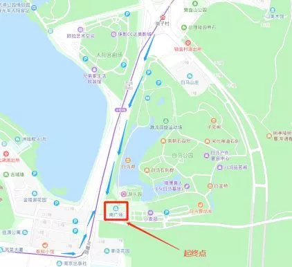 起点位于白马公园南门售票处木屋台阶下方。