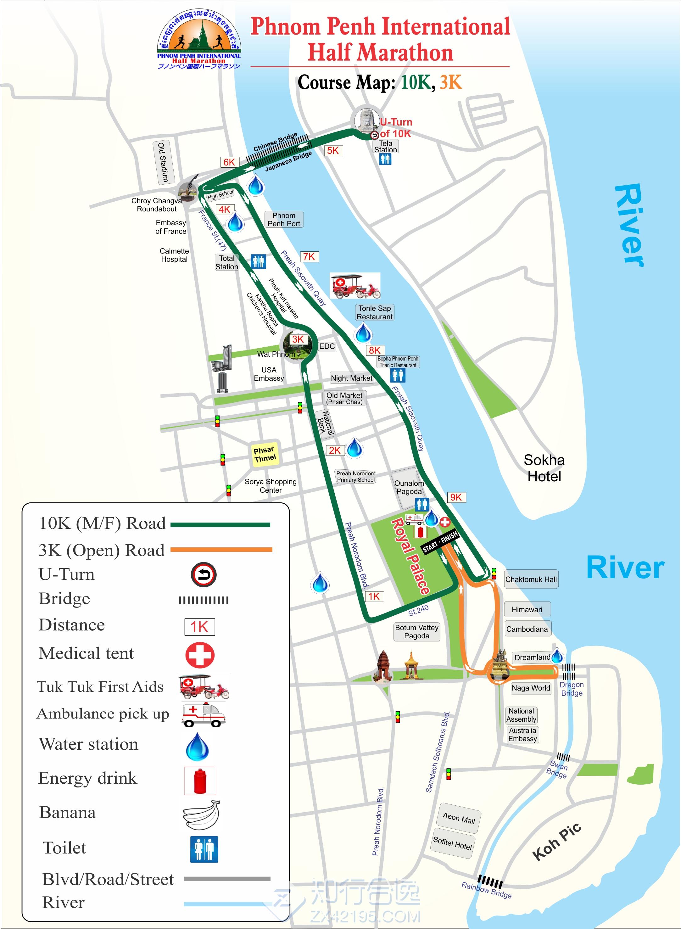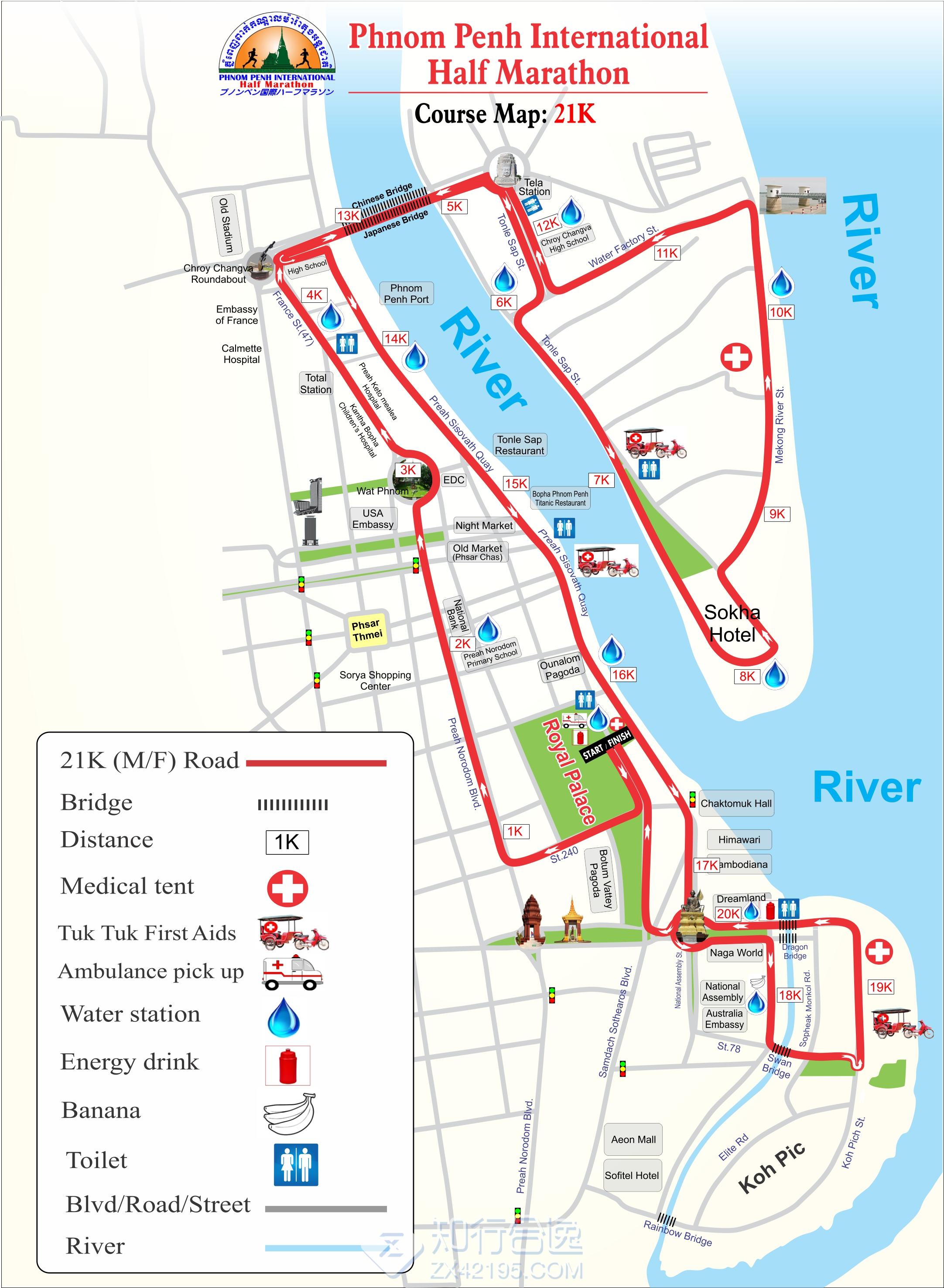 比赛在著名的湄公河畔的皇宫前举行,会跑过金边沿河的街道
