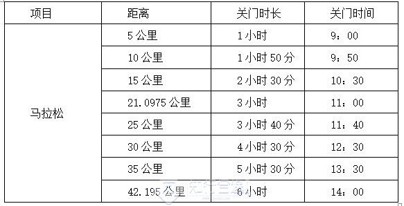 为了保证参赛运动员比赛安全、顺利,比赛期间比赛路线各段设关门时间,限时进行交通封闭。关门时间到后,相应路段恢复正常交通。在规定的关门时间内,未跑完对应距离的参赛者应立即停止比赛,退出赛道,以免发生危险。退出的参赛者可乘坐组委会提供的收容车到相应项目的终点处。