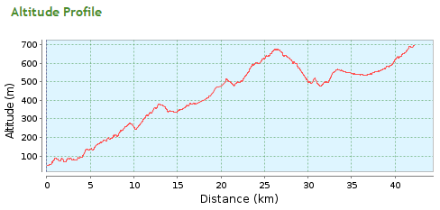 全程马拉松主要从罗什艾因到希洛,赛道宽阔且舒适,但整个赛道爬升相对一般城市马拉松较大。全马累计上升1097米,累计下降454米。海拔范围从49米到694米。沿途补给相对丰富,除了水(全马,半马每3公里设一个水站)之外增加了选手需要的能量胶与其他补给。
