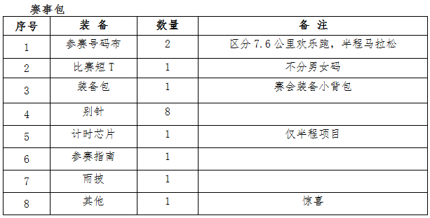 (二)欢乐跑不计时、不计取名次,凡报名参加比赛者赛前均发品牌运动衫、号码布、盛衣包、参赛证书、奖牌(组委会不提供感应计时芯片,参赛者需根据终点计时器显示的时间填写比赛成绩)。