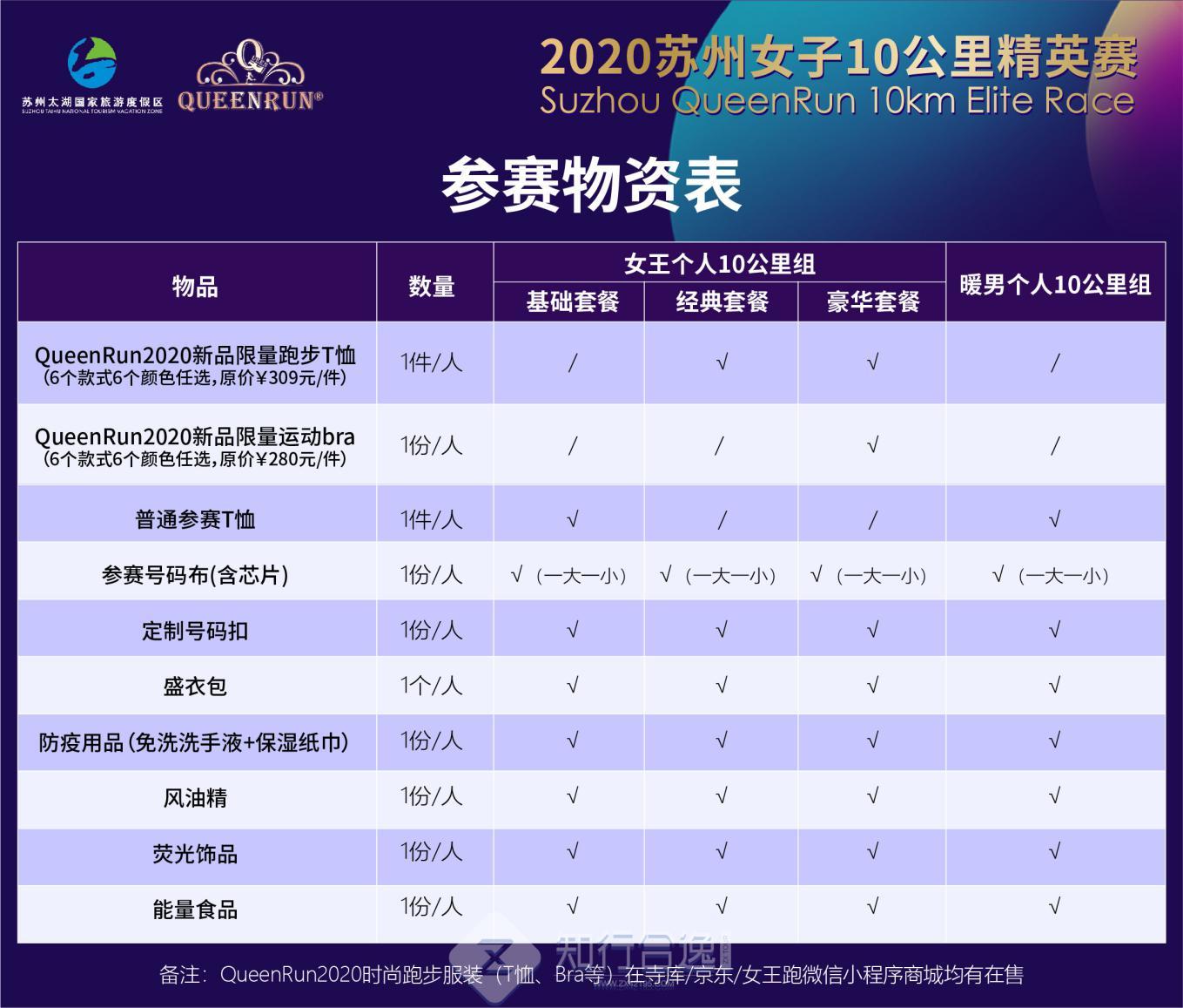 经典套餐 | 268 | QueenRun品牌2020时尚潮流跑步T恤(新品款式颜色至品牌馆任选)+标准参赛物资 |