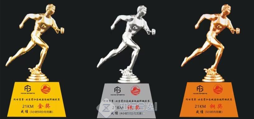 金人,银人,铜人,铁人!比赛奖不停,豪礼敬英雄!箭扣比赛挑战性极高,探索魅力十足,阿甘赛事组委会为激励更多选手完赛,箭扣长城越野赛为优秀完赛选手颁发箭扣金人奖杯,银人奖杯,铜人奖杯,21公里获得奖杯者不能同时拥有奖牌,普通选手奖励箭扣完赛奖牌!