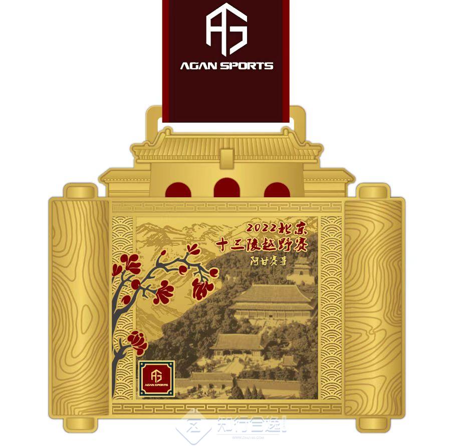 8,完赛奖牌采用帝王陵龙门为主设计,以龙虎山为背景,体现了我国风水文化,结合越野跑,深刻的体现了跑者跑遍祖国大好河山以及盛世太平的美好愿望,奖牌图案(效果图):
