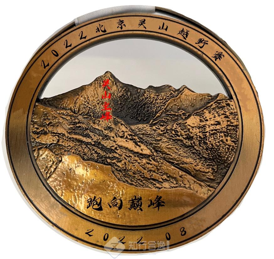 完赛奖牌采用灵山为主设计,寓意山高人为峰,努力拼搏创造阿甘精神,波澜壮阔的人生,奖牌图案: