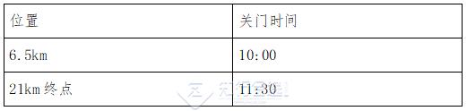 为了保证参赛选手比赛安全,限时对社会交通进行滚动封闭。比赛路线各段专设了赛时关门时间,关门时间之后,相应公里点的计时毯停止工作,相应路段将恢复社会交通。在规定关门时间内,未跑完对应距离的参赛选手须立即停止比赛,退出赛道,以免发生危险。退出比赛的选手可到沿途收容站搭乘收容车或自行选乘公共交通到达终点取衣区。