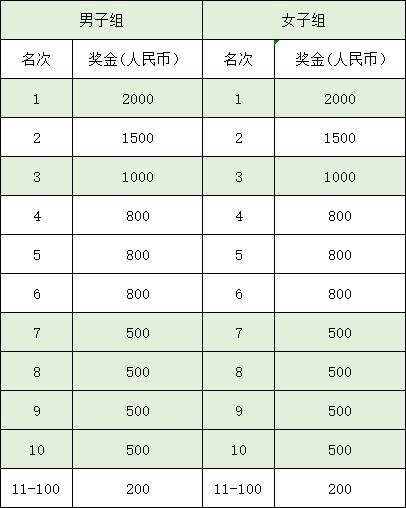 3.如马拉松组参赛运动员同时获得马拉松组竞赛奖项与岳阳市民奖项,同时录取名次并发放奖金。