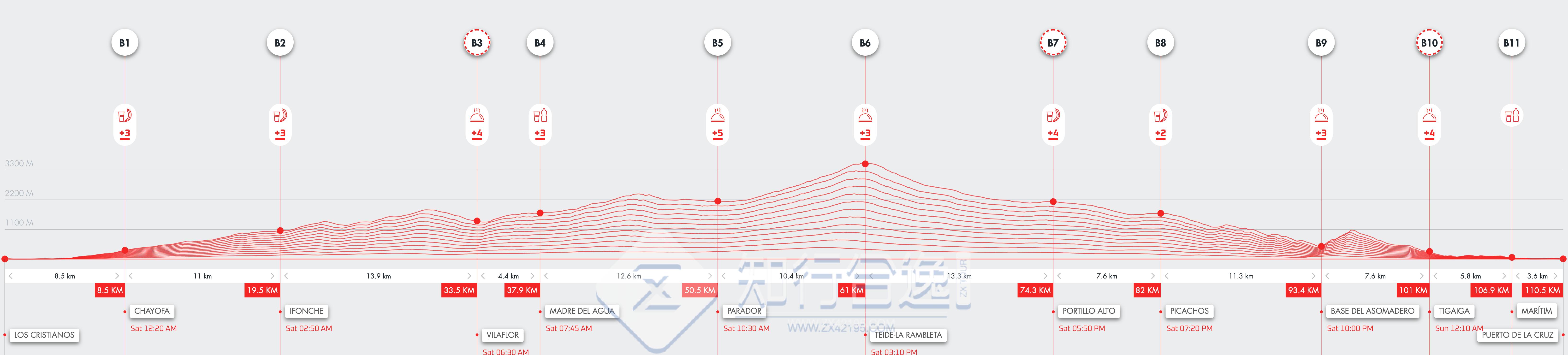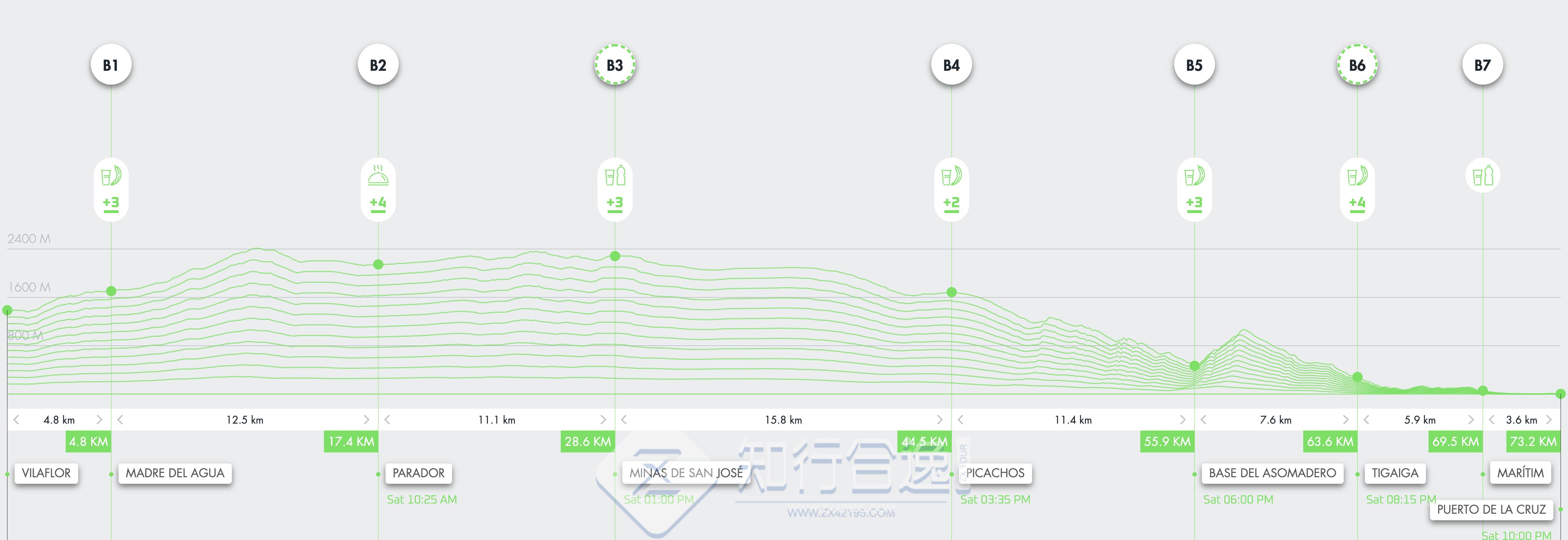 穿越神奇的风景! 对于那些想要在特内里费岛的绿色山脉和大西洋中体验神奇冒险的人来说,这一赛程不容错过。该路线从特内里费岛北部的洛斯雷亚莱霍斯市开始,将带领参与者穿越令人惊叹的自然环境,经过埃尔阿索马德罗和兰布拉德卡斯特罗,这是一条充满令人惊叹的风景的沿海小道。比赛累计爬升1200米,累计下降却达到1900米,对于山地比赛爱好者来说似乎具有特殊的吸引力,年复一年该赛程都是最先报满。
