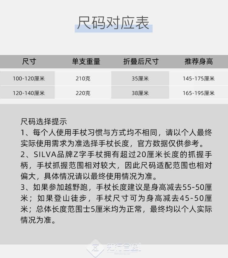 瑞典SILVA Running poles carbon adjust可调节Z字碳纤维越野杖尺寸: