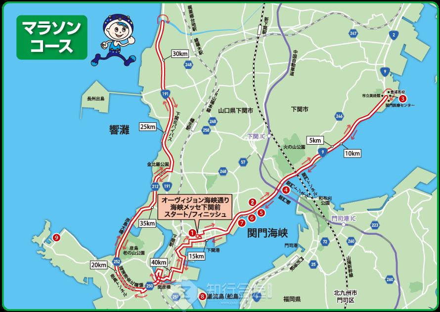 不但补给特别且给力,下关马拉松的赛道也是让你痛并快乐着。比赛路线从海峡国际展示场开始,可以分为上下两段,前半段先向关门大桥方向来回,经过多个下关的旅游景点如春帆楼,关门桥,唐户市场,海响馆。这段比较平坦(但其实也是暗上落斜)。后半段先跑去彦岛,经过金比罗最后到长州出岛然后折返,上落斜颇多。据说有跑友跑了6年下关,抽了6年筋。