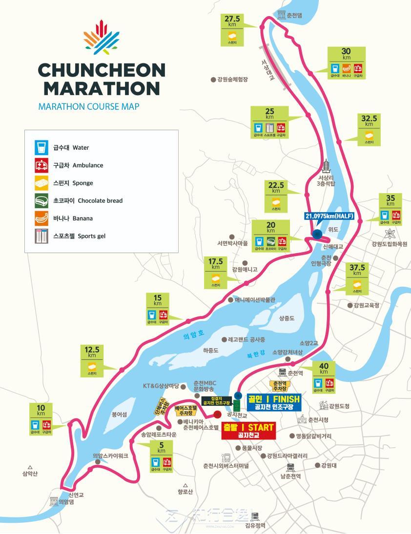 春川马拉松,是韩国第二历史悠久的马拉松,1946年,曾经获得柏林奥运会冠军的韩国运动员孙基祯创办了首届春川国际马拉松比赛。比赛在朝鲜战争期间曾经取消,并且在路线和距离上发生过很多变化。赛事最初在首尔举办,1991年起为避开汽车尾气和复杂交通而移到春川举办。