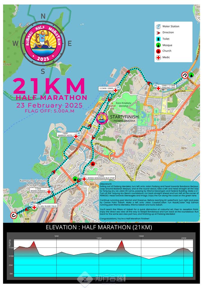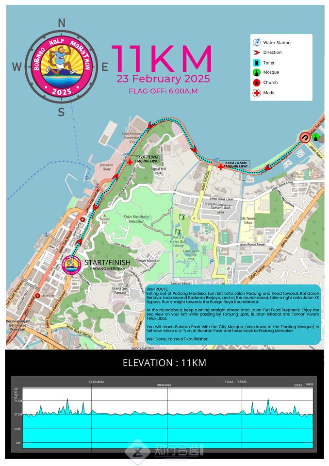 赛道路线设计既方便又愉快,穿过经过亚庇城市的标志性地标和景点,沿着沙巴椰影摇曳的海岸线前行,最后沿着湛蓝海岸与绿荫交错的滨海公路折返回终点。 参与者不仅能沉浸在亚庇的自然美景中,同时也能欣赏到城市独特的魅力。